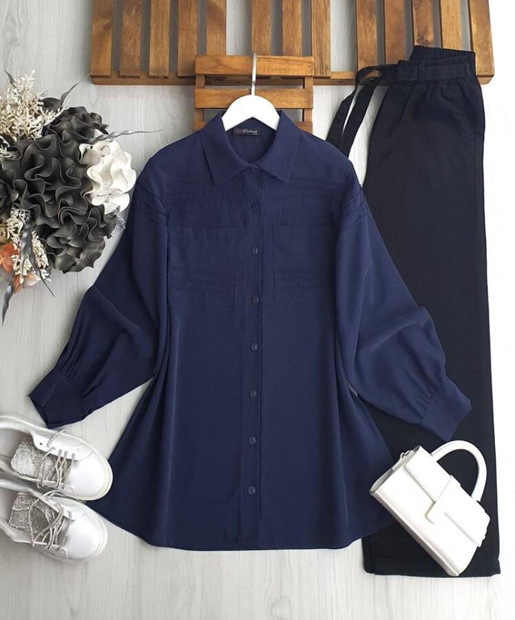 VOVR DİKİŞLİ ÇİFT CEP GÖMLEK TUNİK 5608-12-LACİVERT