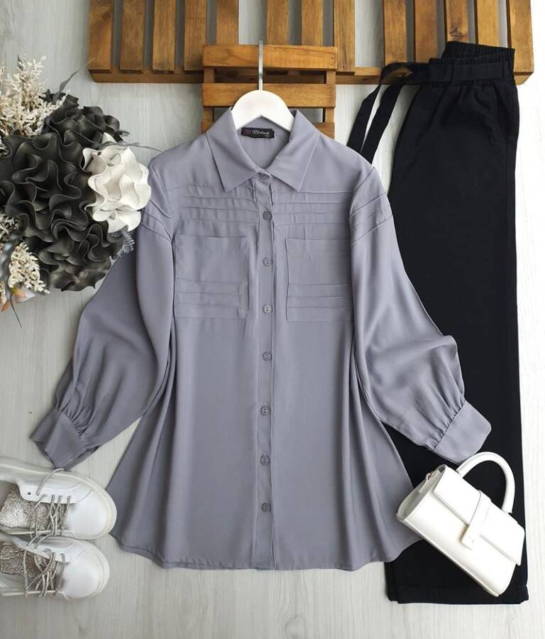 VOVR DİKİŞLİ ÇİFT CEP GÖMLEK TUNİK 5608-26-GRİ