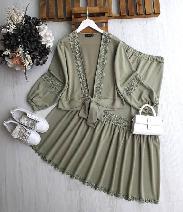 VUE ÖNÜ BAĞLAMALI DANTEL GEÇİŞLİ ETEKLİ İKİLİ TAKIM 1670-07-YEŞİL