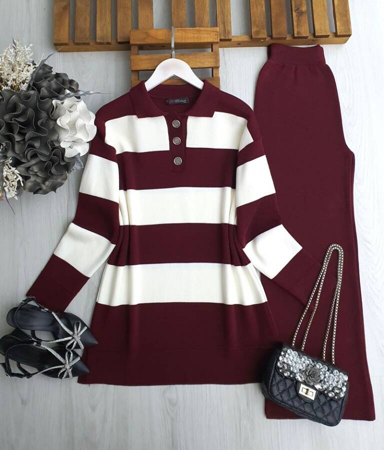 VUZE ÇİFT RENK YAKALI DÜĞMELİ TRİKO TAKIM B10-5-8149-04-BORDO
