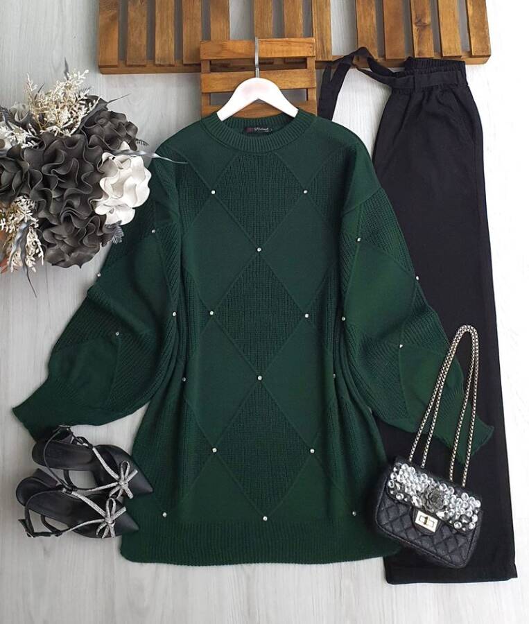 WEND TAŞLI DÜZ VE SELANİK DOKUMA TRİKO TUNİK B5-5-8145-27-ZÜMRÜT