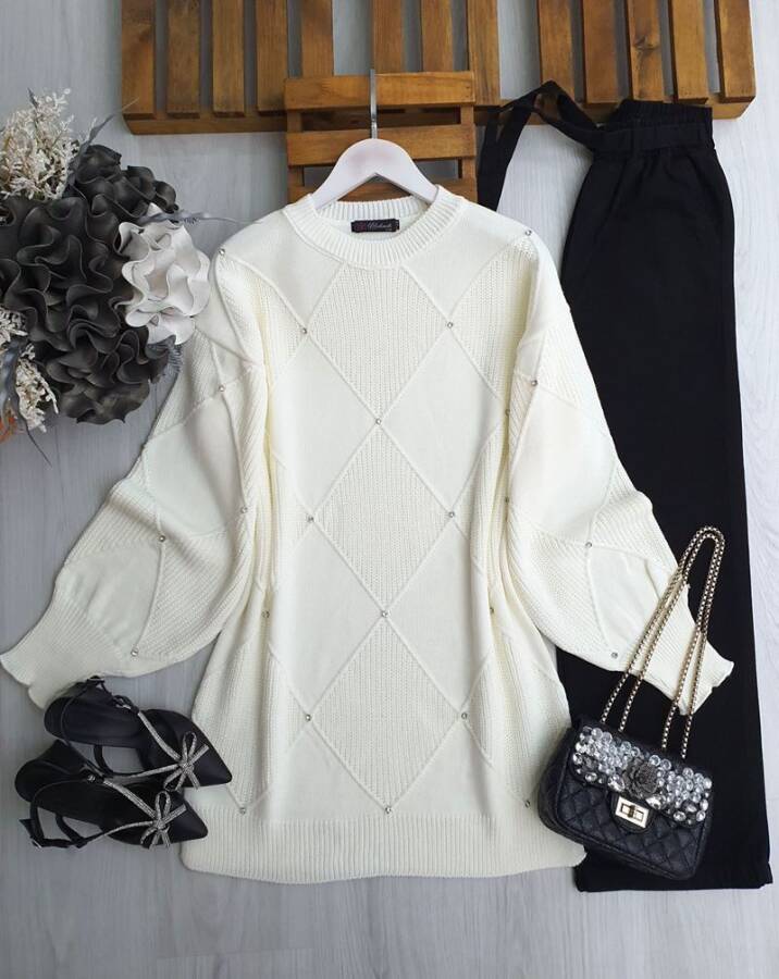 WEND TAŞLI DÜZ VE SELANİK DOKUMA TRİKO TUNİK B5-5-8145-50-KEMİK