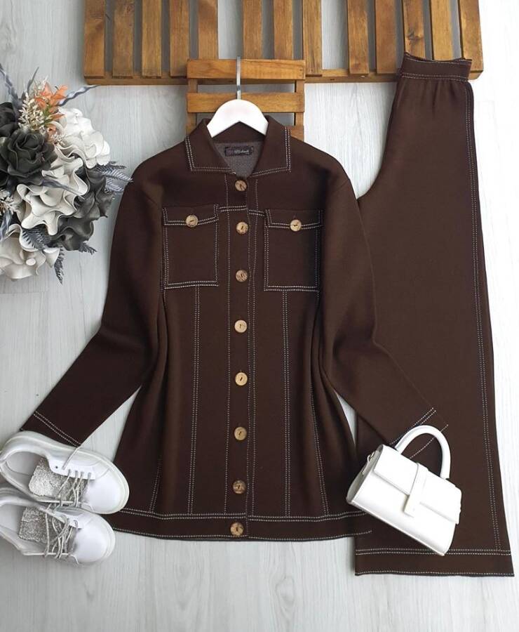 WİLC AHŞAP DÜĞMELİ ÇİFT CEPLİ TRİKO TAKIM A3-3-8136-37-KAHVE