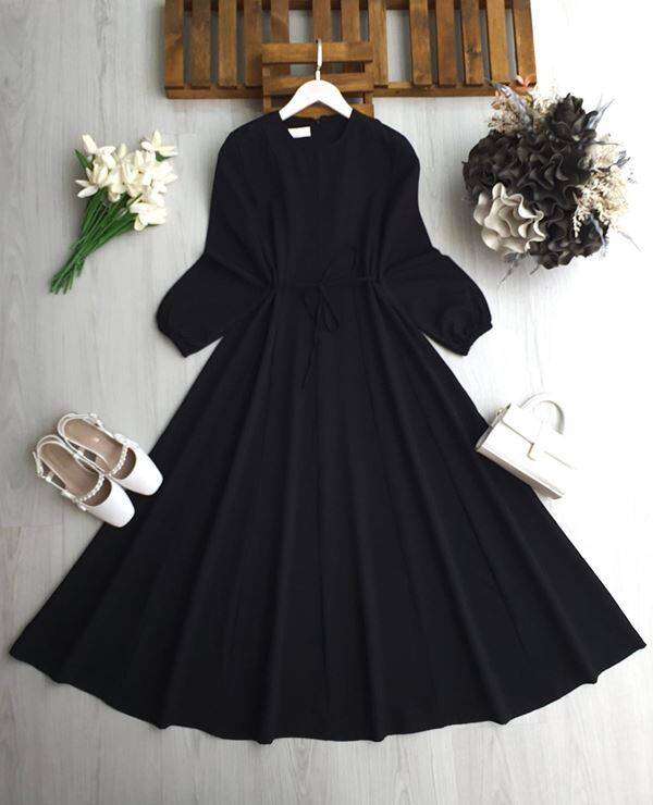 YANP BELDEN OTURTMA PARÇALI DOUBLE ELBİSE 2422-01-SİYAH