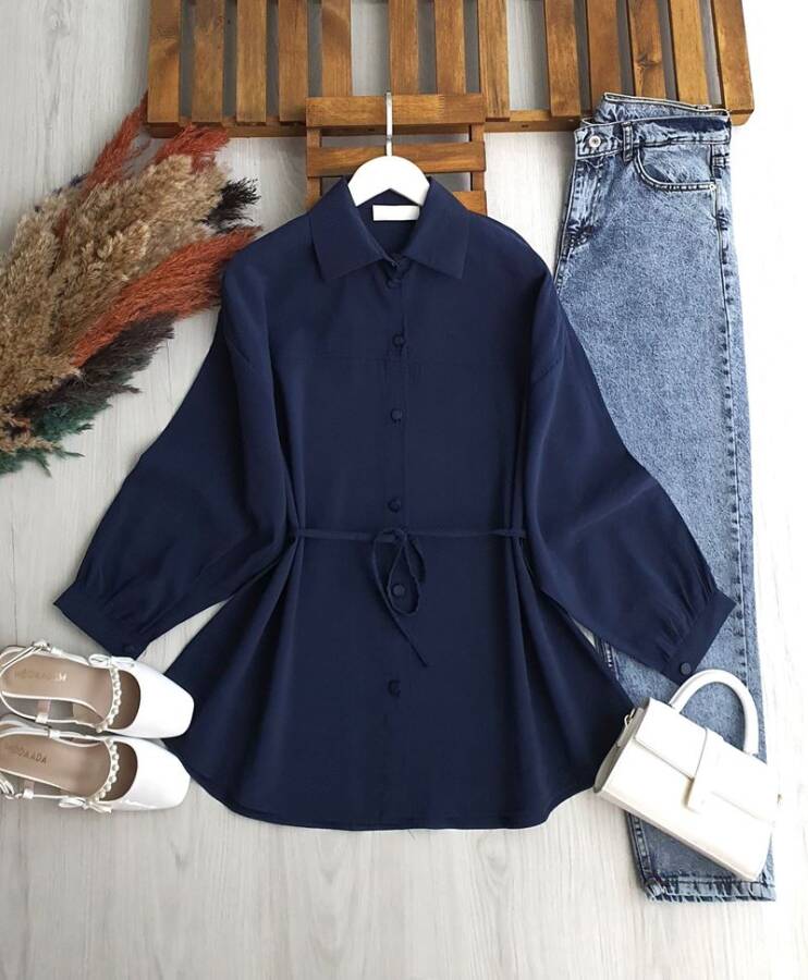 GİLNE KOL DÜĞME DETAYLI SALAŞ TUNİK B2-4-5673-12-LACİVERT