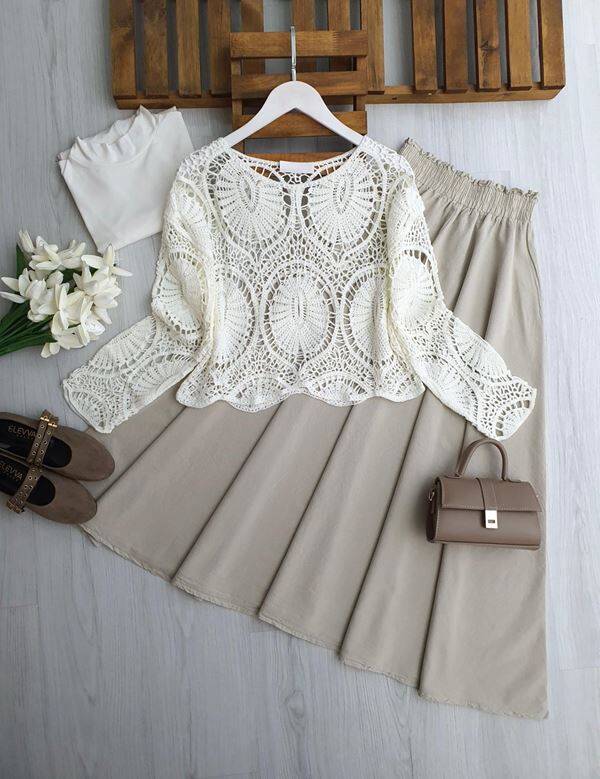 YCL DANTEL ÖRGÜ BLUZ 8204-20-BEYAZ