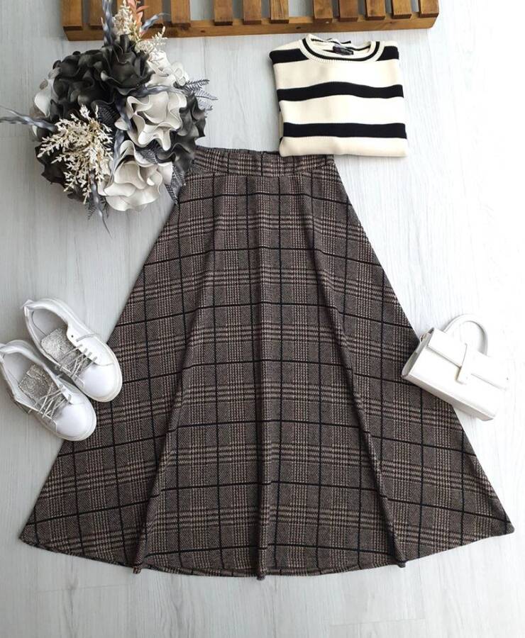 YEGDAN EKOSE DESENLİ BALIKSIRTI ETEK 6090-34-BEJ