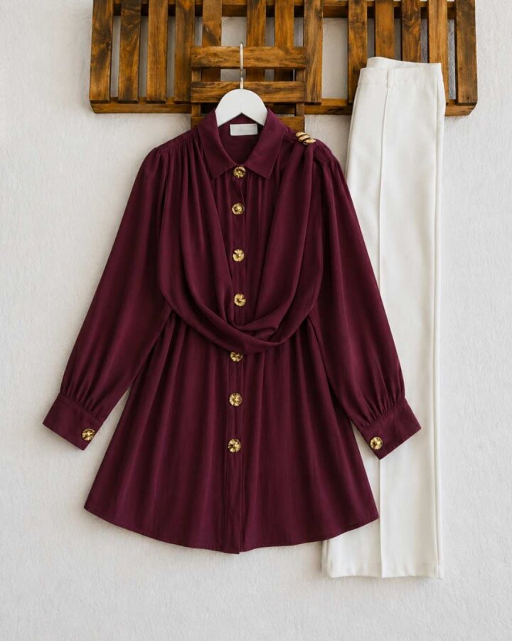 OHLEN FULARLI KOLYELİ GÖMLEK TUNİK B5-4-5733-04-BORDO