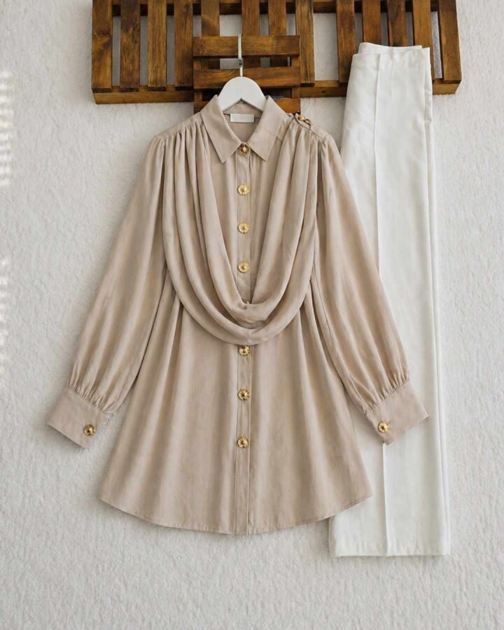 OHLEN FULARLI KOLYELİ GÖMLEK TUNİK B5-4-5733-25-VİZON