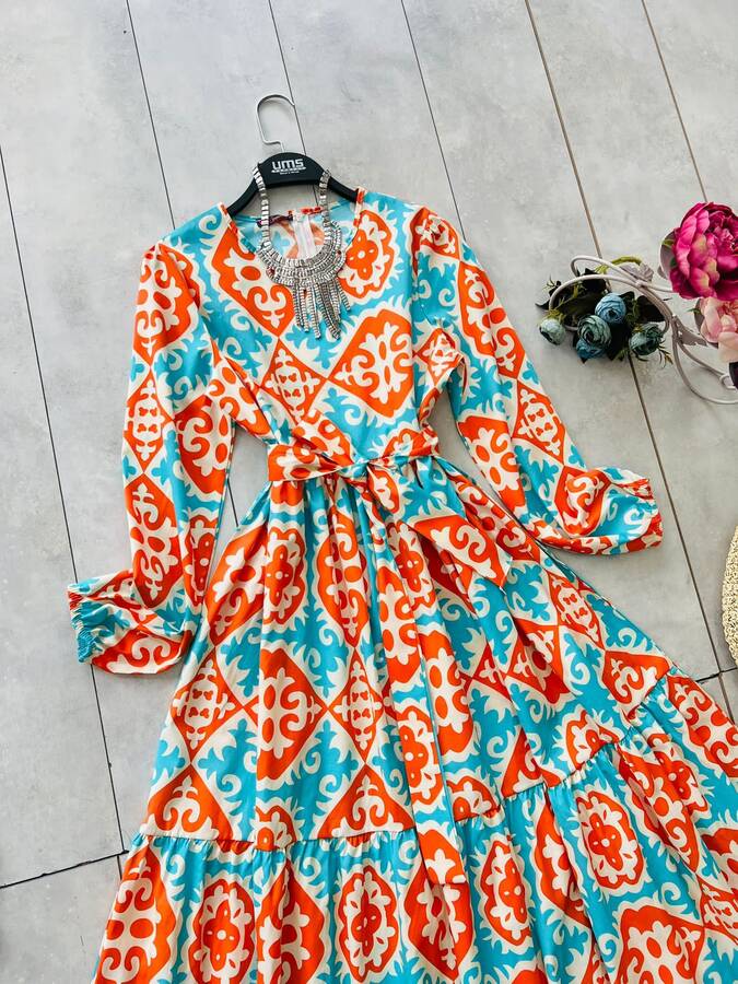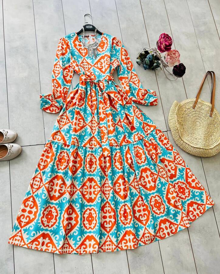 YELSE DESENLİ MEVLANA ELBİSE A10-1-2245-15-ORANJ
