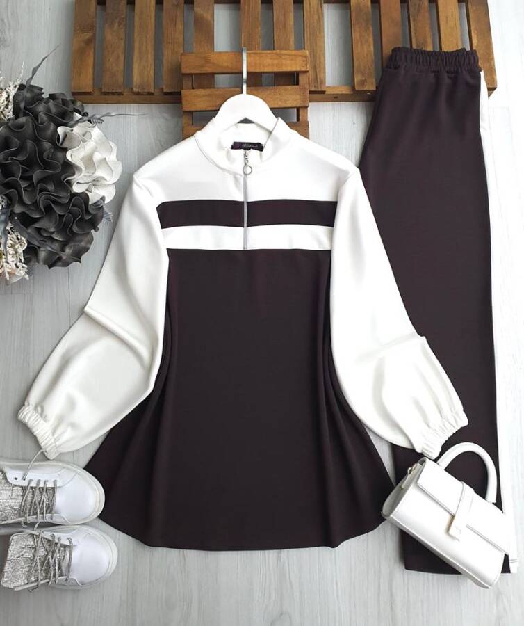 YEVDA YARIM FERMUARLI PANTOLON ŞERİTLİ SPOR TAKIM B6-4-1648-37-KAHVE