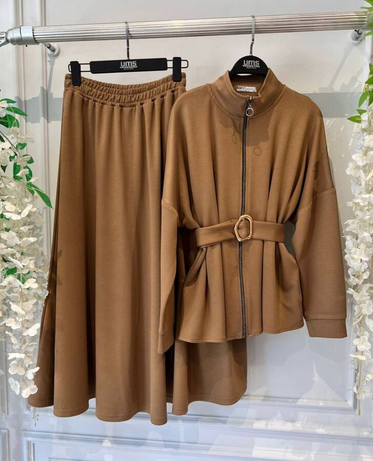 YILN KEMERLİ ÖNÜ FERMUARLI ETEKLİ TAKIM B1-3-1664-48-BİSKÜVİ