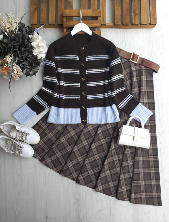 YODLA ÇİZGİLİ GARNİLİ YUMOŞ HIRKA A8-3-3222-103-MAVİ-KAHVE