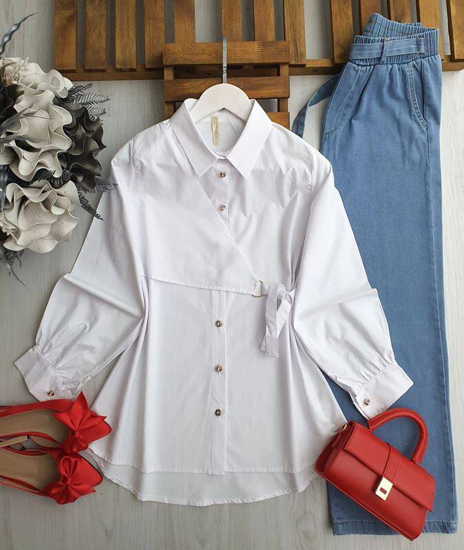YOLQ HALKALI YAN BAĞLAMALI GÖMLEK TUNİK 5554-20-BEYAZ