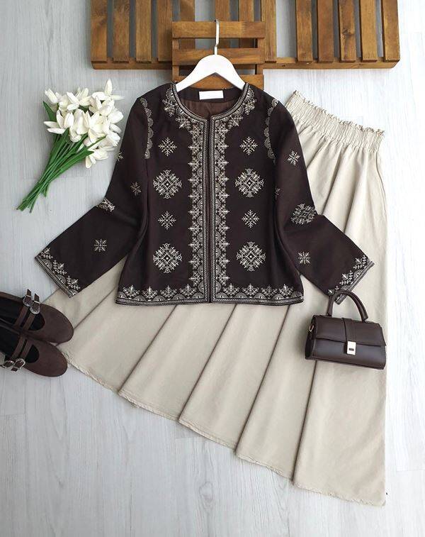 YOSA ÇİNİ NAKIŞLI ASTARLI CEKET 3231-37-KAHVE