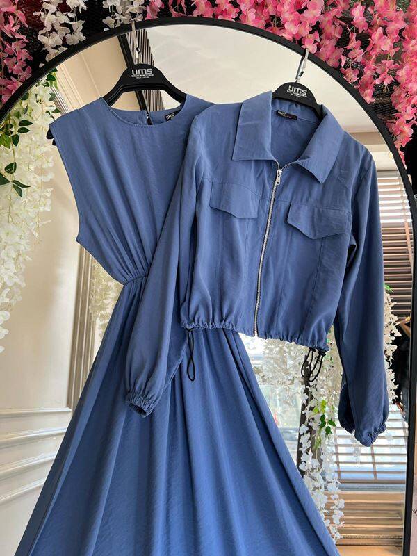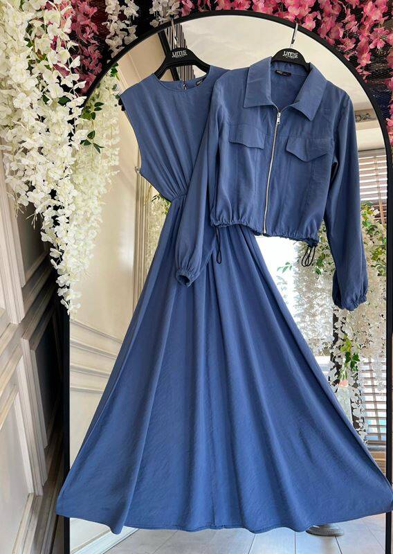 ZUGGE CEP KAPAKLI CUPRA CEKET VE ELBİSE İKİLİ TAKIM B11-3-1609-11-İNDİGO